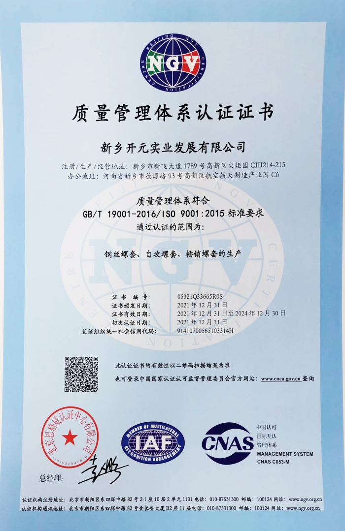 質(zhì)量管理體系認證證書 英